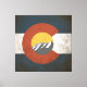 Beautiful canvas print of the Colorado State Flag, grunge with mountains.