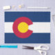 In the year 1911, the state of Colorado, a land of breathtaking beauty and boundless opportunity, sought a flag to symbolise its unique identity. A committee was formed to design a flag that would capture the essence of the Centennial State. - After much deliberation, a design was chosen that celebrated the state's natural wonders and rich history. The flag featured three horizontal stripes: two bands of sky blue, mirroring the vast, clear skies that stretch across the state, and a central band of white, representing the snow-capped peaks of the Rocky Mountains. - At the heart of the flag, a bold red "C" stood out, its golden centre a beacon of hope and prosperity. The "C" was a symbol of Colorado itself, but it also represented the state's centennial year, 1876, and the beautiful Columbine flower, Colorado's state flower. The gold within the "C" not only symbolised the state's abundant sunshine but also paid homage to the gold rush that had shaped the state's early history. - This simple yet powerful design quickly became a beloved symbol of Colorado. It represented the state's rugged beauty, its pioneering spirit, and its unwavering optimism. The Colorado flag, with its vibrant colours and meaningful symbolism, has become a cherished part of the state's identity, flying proudly over its cities, towns, and mountains.