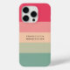 A stylish colorblock iphone case with 5 horizontal stripes in shades of pink, peach and green in a modern mininmalist design style. The text can easily be customised with your name or title for the perfectly personalised gift or accessory.