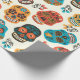 Colorfu retro floral sugar skulls pattern wrapping paper