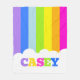 Bright rainbow stripes personalized short name white cloud kids bedroom blanket, part of the rainbow range. Customize with your own 5 letter name currently reads Casey. A perfect gift for colorful rainbow lovers. Original art and design by Sarah Trett exclusively for www.mylittleeden.com on zazzle