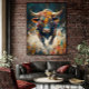 Colorful Abstract Bull Canvas Wall Art for Modern