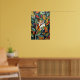 Colorful Abstract Cat in Leafy Tree Design Poster
