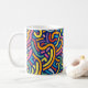 A bold and energetic mug design filled with vibrant abstract curves and playful flowing lines. The rich mix of bright colors on a deep background creates a joyful rhythm, perfect for creative minds and lovers of modern art-inspired drinkware.