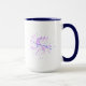 This colorful abstract neon splash coffee mug features a vibrant modern art design on a dark background.