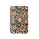 Colorful abstract records bath mat wth warm tones.