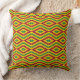 Colorful African Kente pattern in bright yellow, maroon and green.