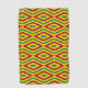 Colorful African Kente pattern in bright yellow, maroon and green.