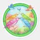 Сolorful birds gathered in a spring garden, evoking friendship, harmony and joyful nature scenes with flowers, clouds and soft pastel tones for decorative art.