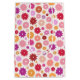 Colorful flower pattern in yellow, orange, pinks, lilac and reds on a cream color background.