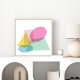 A stylish and simple collage of geometric shapes in a colorful palette of pink, green, and blue.