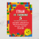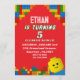 This playful birthday invite was inspired by a day of stepping on tiny bricks (every parent knows that feeling!) and imagining a world kids build piece by piece. Bright colors, bold shapes, and a cheerful character set the tone for a fun, creative celebration your little builder will love!