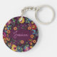 Colorful Busy Floral Pattern Purple Personalised Key Ring