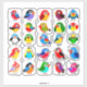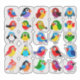A lively collection of twelve cartoon-style bird stickers in bright colors. Ideal for kids crafts, scrapbooks, or classroom décor, conveying friendship, playfulness, and nature-inspired charm.
