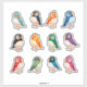 A lively collection of twelve cartoon-style bird stickers in bright colors. Ideal for kids crafts, scrapbooks, or classroom décor, conveying friendship, playfulness, and nature-inspired charm.