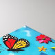 A sweet canvas wall art with a cute illustration of a colorful abstract cat surrounded by flowers, butterflies and the sun in a paper quilling impasto style.