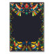 This Colorful Cinco de Mayo Fiesta Spanish Wedding Table Number design showcases a vibrant Mexican folk art-inspired theme, featuring colorful birds, flowers, and a central heart motif. The bright red, yellow, blue, and green hues stand out against the deep black background, creating a festive and lively atmosphere. The symmetrical arrangement of the birds and flowers adds balance and harmony, perfect for wedding invitations or celebratory stationery.