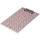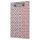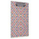 Colorful clipboard with geometric pattern of diamonds and triangles in orange, blue, and pink tones. Shown from the front and left angles.