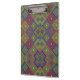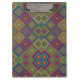 Colorful clipboard with vibrant geometric diamond patterns in orange, green, and blue on the front and side. The design is bright and eye-catching.