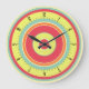 A colorful modern design made up of concentric circles in harmonious colors, with stylish numerals and hours and minutes scale.