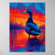 A vibrant expressionist duck standing in glowing sunset waters, filled with intense neon tones and dramatic reflections. This bold nature artwork is ideal for modern home decor, creative studios, wildlife lovers, and anyone who appreciates colorful, emotional wall art.