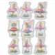 This enchanting sheet of stickrs features a full collection of whimsical cutouts, each one showcasing a colorful, iridescent fairy perched gracefully atop a giant mushroom. Their wings shimmer with pearlescent hues—soft violets, aqua blues, rose pinks, and golden greens—catching the light as if dusted with stardust.