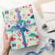 Colorful Festive Christmas Holiday Pastel Green Wrapping Paper. Hand Drawn Christmas elements done by acrylic paint and digital drawing, vintage style sea green back ground with bright colorful Christmas elements. Art work done by Serene Inanna Studio.