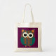 Tote bag with a cute and colorful purple and orange floral owl on a purple background.