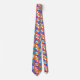 Colorful floral-patterned tie on a white background. The design features vibrant flowers in red, orange, blue, and yellow, conveying a playful tone.