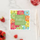 Happy Birthday spring flowers, blue, red, yellow, green and orange petals.Customizable design with desired name
