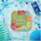 Happy Birthday spring flowers, blue, red, yellow, green and orange petals.Customizable design with desired name