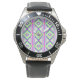 My husband loves the watch, he likes the dial, the graphics, the band, and it keeps perfect time.