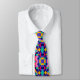 Colorful geometric-patterned tie displayed front and back. Features vibrant pink, blue, and green squares and circles, set on a light background.