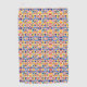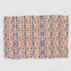 "Colorful geometric patterned towels displayed vertically and horizontally. The intricate design features repeating symmetrical shapes in red, blue, yellow, and pink, conveying a vibrant and lively tone."