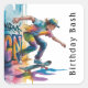 Celebrate in bold street-style fun with this vibrant skateboarding birthday party design! Featuring a colorful graffiti backdrop and an action-packed illustration of a skateboarder in motion, this energetic artwork is perfect for boys who love skating, art, and adventure. A great choice for invitations, party décor, or customizable birthday supplies with a cool urban vibe.