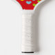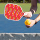 Colorful hearts on red pickleball paddle