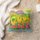 A colorful pillow with a hippie design on it.