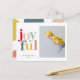 Share the joy of the season with this Joyful Modern Photo Holiday Postcard, featuring a fresh minimalist layout and a customizable photo spot. The vibrant “JOYFUL” typography, paired with your favorite family photo, creates a clean yet heartwarming holiday greeting that perfectly captures modern Christmas spirit. Ideal for mailing to friends, family, or coworkers — this design brings cheer in every envelope. ✨ Features: • Custom photo layout with colorful “JOYFUL” typography • Simple, modern design for timeless appeal • Printed on premium matte paper with a soft finish • Personalized name and year text option • Perfect for family Christmas cards, new year greetings, or photo postcards Send your holiday wishes in style — minimal, meaningful, and full of joy.