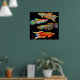 Painting of four killifish by designer/illustrator Carolyn McFann printed on a quality poster for aquarium fish lovers and hobbyists.