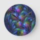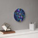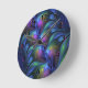 Colorful Luminous Abstract Blue Pink Green Fractal Round Clock