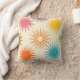 Ignite retro joy with this vibrant mid-century modern starburst pattern. Bold, radiating bursts in sunny orange, golden yellow, teal blue, deep purple, magenta pink, and lush green explode across a soft cream background, featuring textured, hand-printed details for authentic vintage charm. The playful yet sophisticated arrangement captures the optimistic energy of the 1950s and 60s, bringing dynamic color and atomic-era flair.