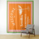 personalised retro bachelorette party tapestry in bright colors with a cocktail glass is perfect as a bachelorette party photo backdrop. Celebrate your bridal shower in style with the perfect cocktail party theme in bold pink, the perfect theme for the nostalgic vintage 70s bride and her bridesmaids.