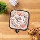 Colorful picture of a heart, flowers and leaves, is featured on this pot holder for Mother's Day. With message, "Happy Mother's Day", makes this a sweet gift to thank Mom for all her wonderful cooking! Has silver quilted heat protection and hanging loop too.