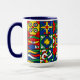 Hold an art. Drink your story. This is not just a mug — it's a piece of a universe where everything jumps in color and energy. Each square of this mosaic is a fragment of history: 👁️ Eyes that see beyond the obvious, 🌟 Stars that explode in the midst of chaos, 🐍 Snake that dance between lines, 🔥 And a jungle of geometric forms with a carnival soul. Inspired by the primary colors — blue, red and yellow — with taps of green, white and black, this art is a visual scream that mixes the folklore of Brazilian imagination with the modern pop spirit. Perfect for those who drink coffee boldly and live life as an explosion of creativity.