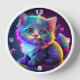 COLORFUL NEON BLUE EYE KITTEN CLOCK
