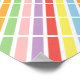 Geometric linear, rectangle, striped pattern of rainbow pastel hues of blue, orange, green, pink, purple, red and yellow.