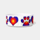 This is a heavy, durable bowl decorated with Tibbies of many colors, the perfect size for hungry/thirsty Tibs. The design is interesting and printing clear.
