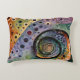 The cushion is small to medium sized. It can be washed. It is well constructed. The material used is pleasant and feels decent quality. It has a very slight plush feel which is good. It is well labelled and its care clearly stated. Theres nothing not to like about it. All in all a good item. The deduction of one star overall is due to long delays in delivery to the UK. It's not clear if this was due to Zazzle or somewhere else in the chain as I did not receive status updates of dispatch or progress. I cannot comment anymore on that other than to say that was our experience but it may not be the same for you. The printing was surprisingly close to what we were expecting. Its an art piece and on material so its hard to assess the precision of printing but it seems close to the original. The soft lines are reproductions of the original. The colour is a fair reflection of the painting. This was printed in the US and it looks like US quality. No issues.