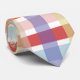 Multicoloured summer plaid / check pattern gents tie. Shades of purple, sky blue, blush pink, yellow, orange, raspberry and purple colours to match any occasion for the spring and summer months.