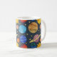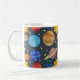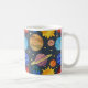 A bright, playful pattern featuring watercolor planets and stars on a dark background. Made to feel fun and full of cosmic energy.